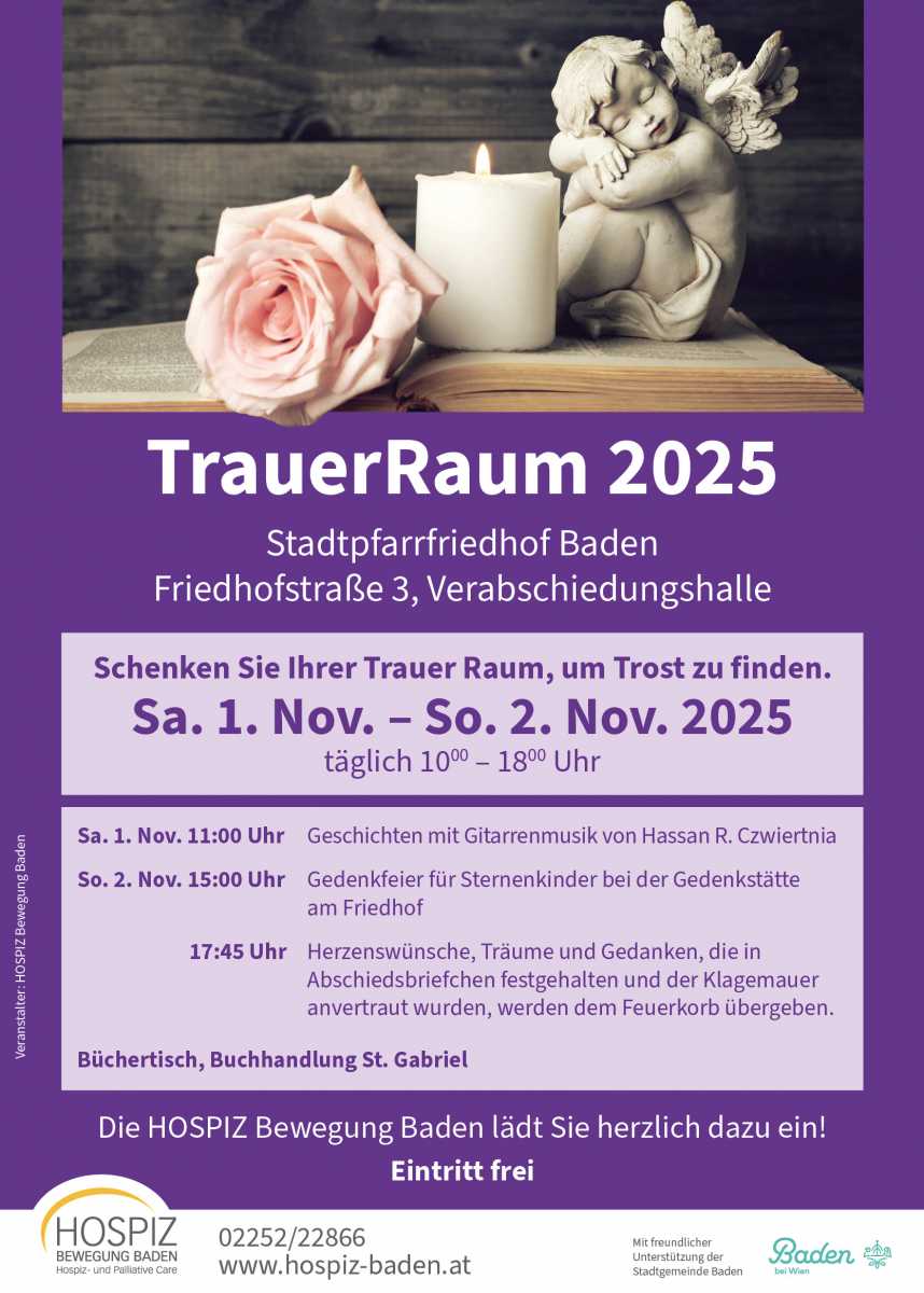 10:00 – 18:00 Uhr |Stadtpfarrfriedhof Baden, Friedhofstraße 3, Verabschiedungshalle