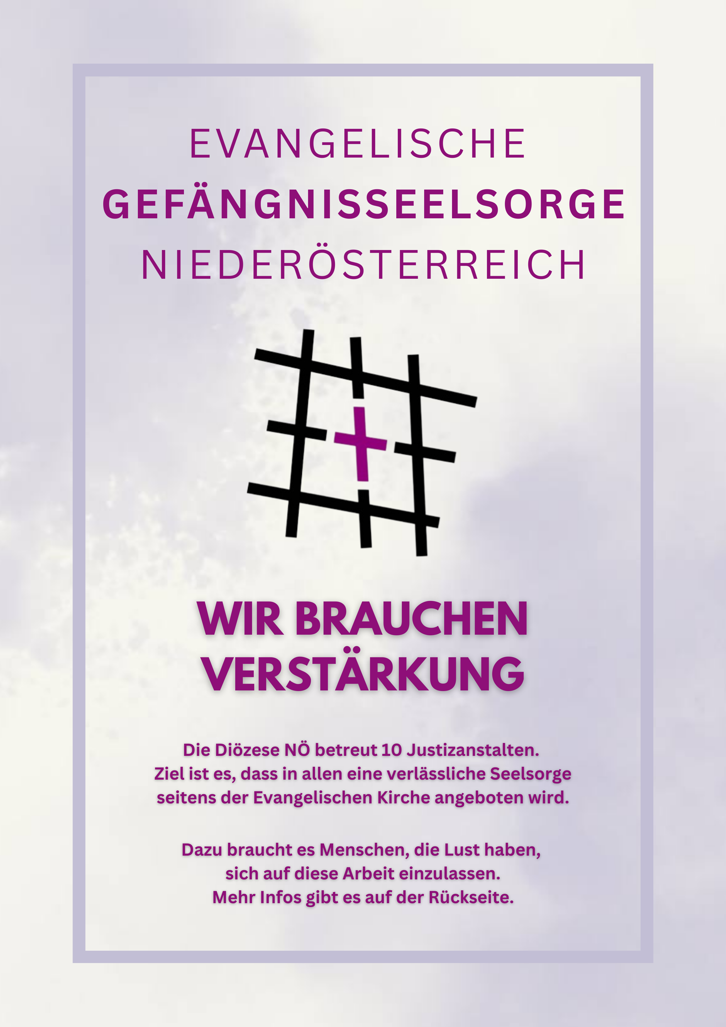 Die Diözese NÖ betreut 10 Justizanstalten. Ziel ist es, dass in allen eine verlässliche Seelsorge seitens der Evangelischen Kirche angeboten wird.