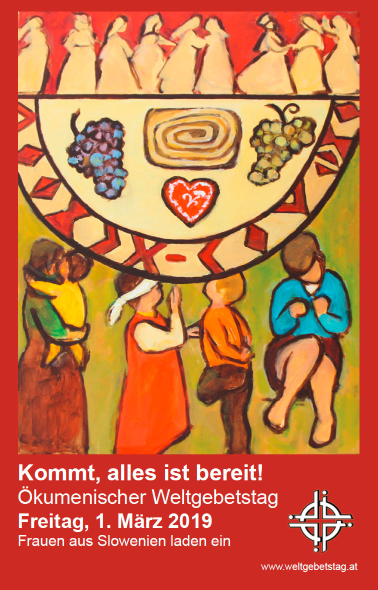 „Kommt, alles ist bereit!“ lässt der Gastgeber im Gleichnis vom Festmahl (Lk14,15-24) den eingeladenen Gästen ausrichten – doch keiner kommt. So werden andere eingeladen: die Armen, die Blinden, die Lahmen, die, die an den Wegen und Zäunen stehen. Von eben diesen nicht Eingeladenen in ihrem Land berichten Frauen aus Slowenien in der Gottesdienstordnung für den Weltgebetstag 2019.