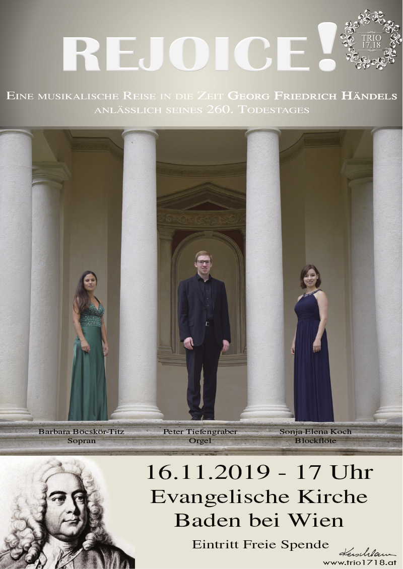 Anlässlich des 260. Todestages von Georg Friedrich Händel gibt das Trio 17.18 ein Benefizkonzert in der Evangelischen Kirche Baden – machen Sie eine musikalische Zeitreise!