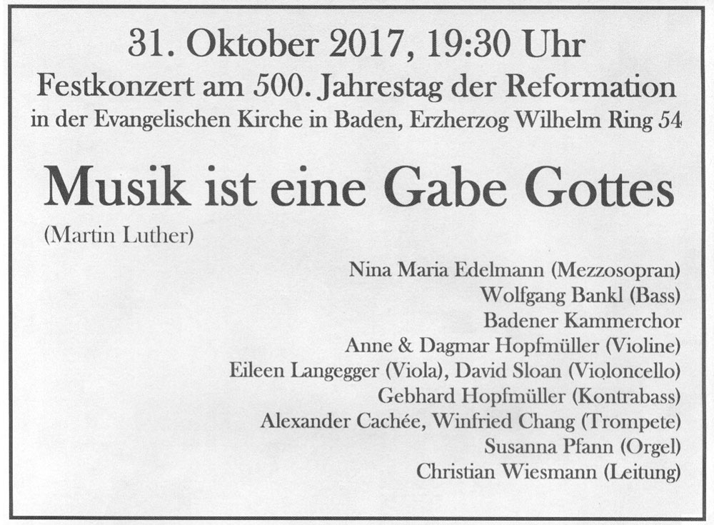 Weiterlesen … Dienstag, 31. Oktober: Reformations-Jubiläumskonzert