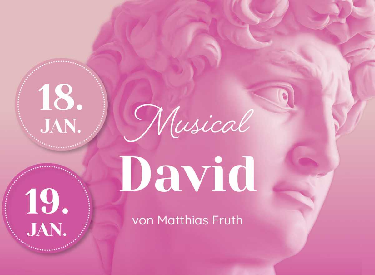Unter der Leitung von Mag. Birgit Curdt und Mag. Stefanie Lenzenweger wird das Musical „DAVID“ von dem Karlsruher Musiker und Komponisten Matthias Fruth am 18.1. und 19.1. um 18 Uhr aufgeführt.