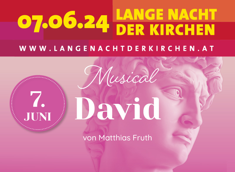 Unter der Gesamtleitung von Mag. Birgit Curdt wird das Musical „DAVID“ von dem Karlsruher Musiker und Komponisten Matthias Fruth im Rahmen der „Langen Nacht der Kirchen“ aufgeführt.